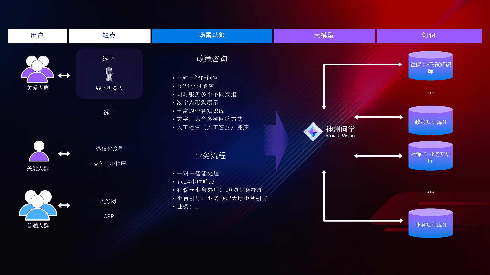 • 线上线下全覆盖:线上提供微信公众号、、支付宝小程序、、、政务网、、、、app多种渠道,,,,与线下机器人形成完整服务体系。。。。